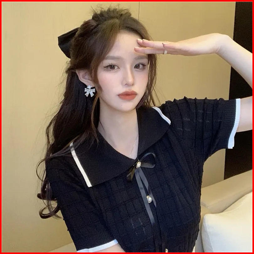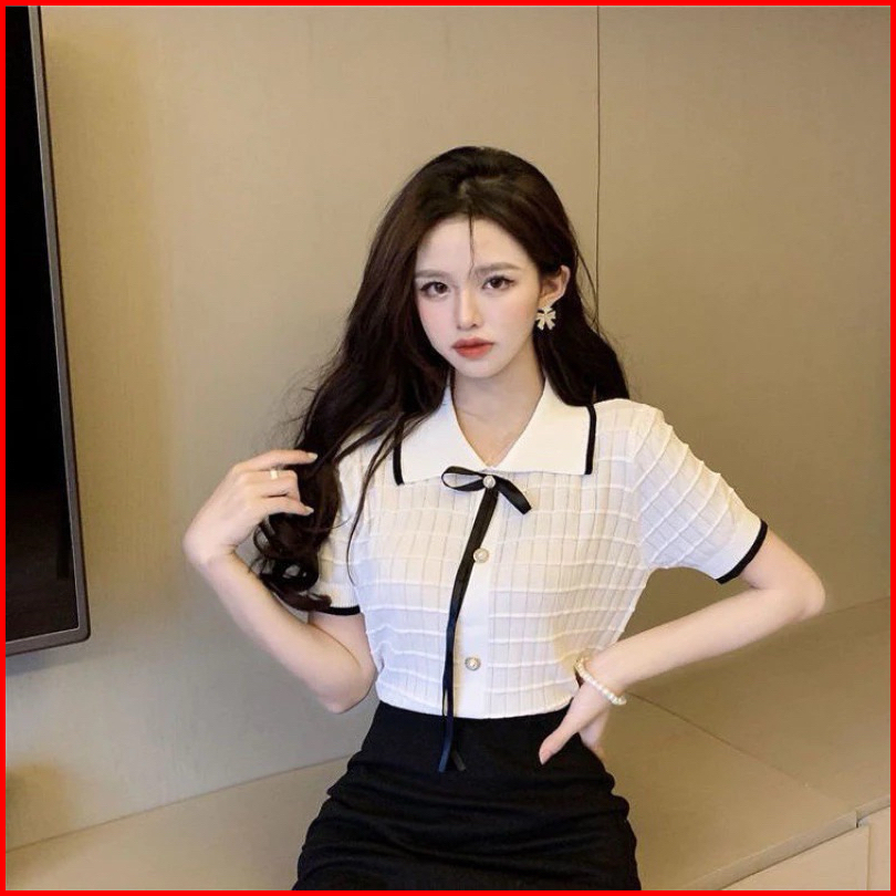 Korean Knit Top Stripes Collar Knit Baju Rajut Wanita Berkerah Terbaru A227