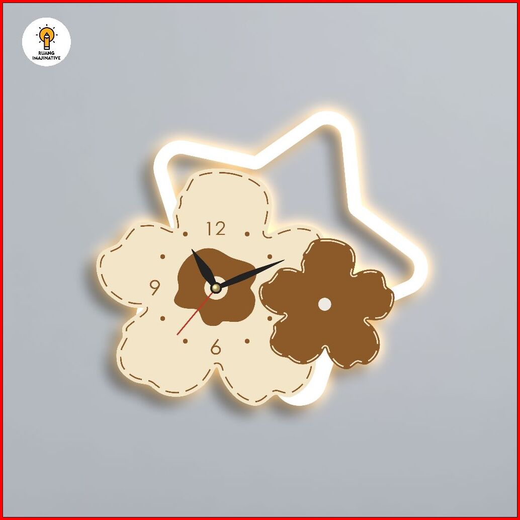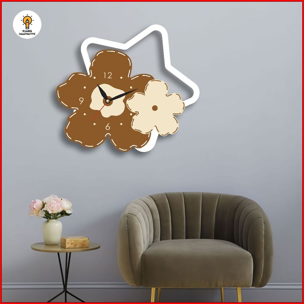 Jam Dinding Ukir Bunga Bintang Aesthetic Ruang Tamu Kamar Anak F40 New