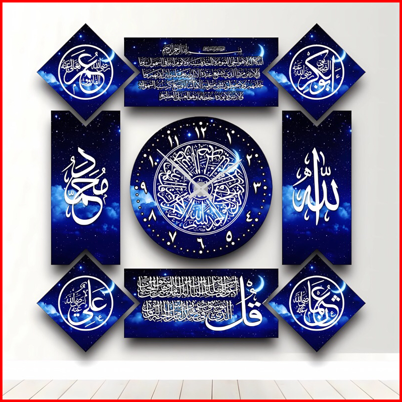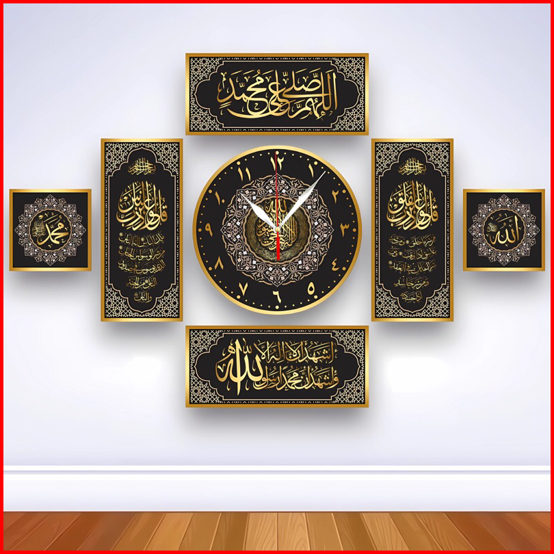 Jam Dinding Kaligrafi Minimalis 7 Set Hiasan Mewah