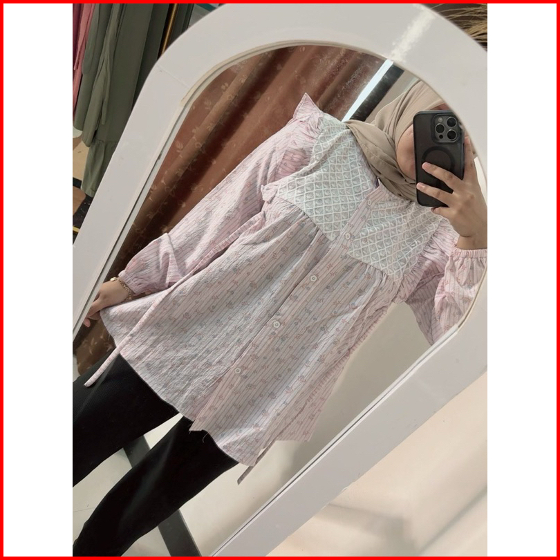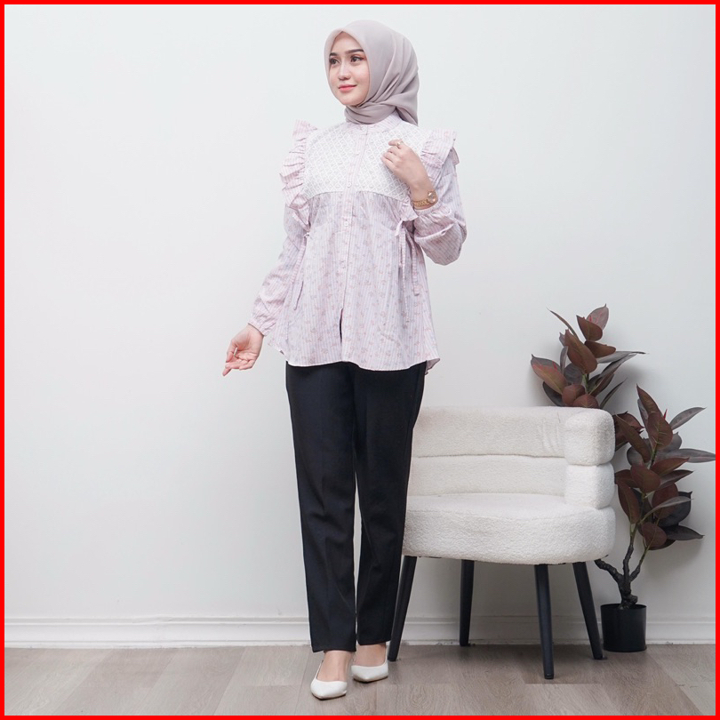 Ameera Blouse Lengan Panjang Bunga-bunga Brokat