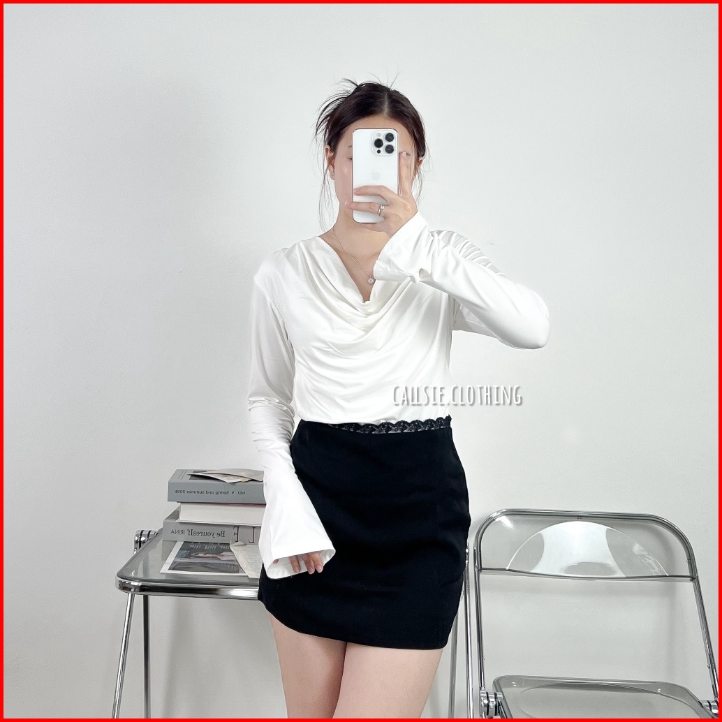 Callsie Quinn Top Long Basic Daily 352 Flare Long Sleeve Basic Top Dailywear Atasan Wanita Lengan Panjang Terompet