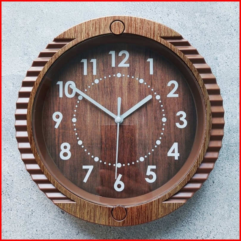 Jam Dinding Esa 727 Minimalis Wood Dekorasi Rumah Unik Murah Motif Wooden Bulat Bonus Baterai