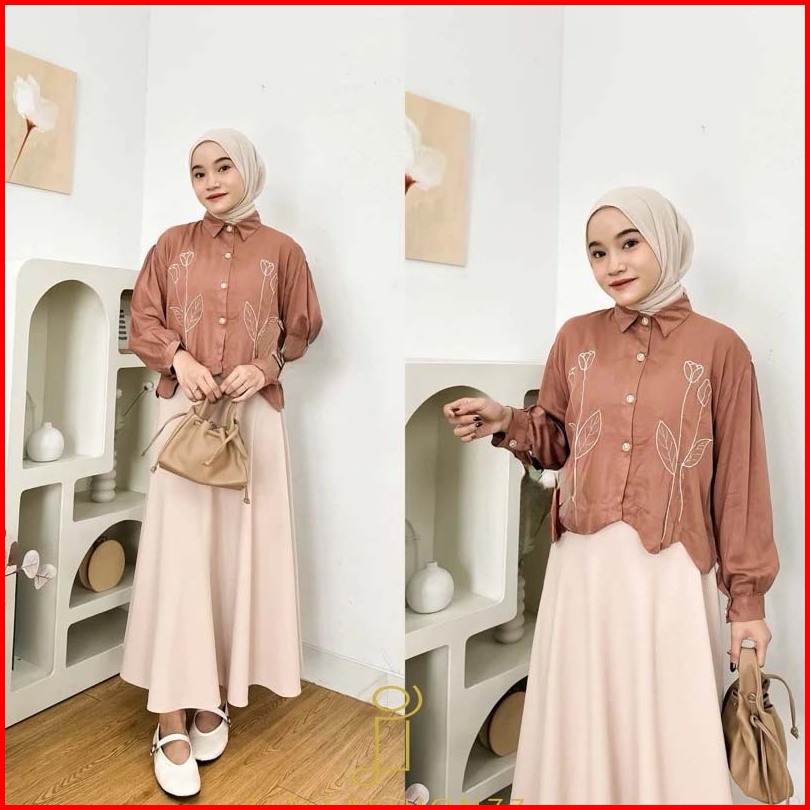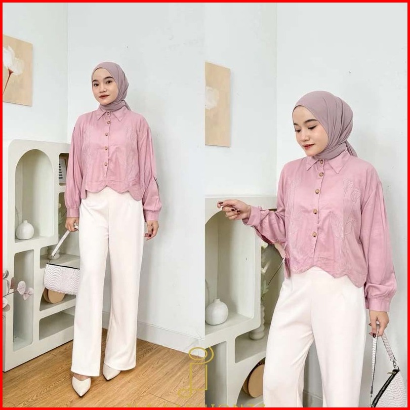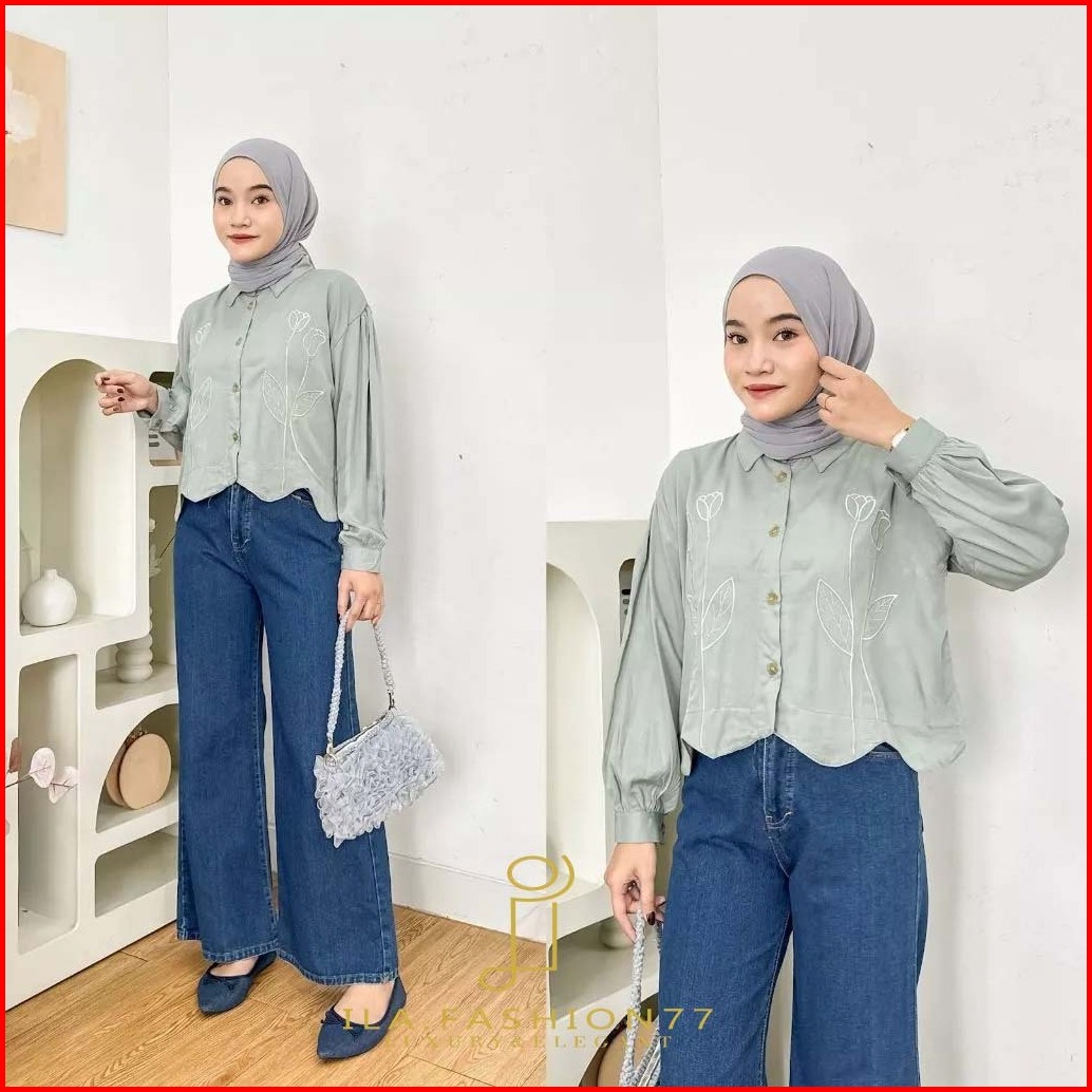 Kemeja Wanita Rayon Twill Bordir Bunga Aryma Top Flower Shirt Embroidery Katun Adem Ila.fashion77