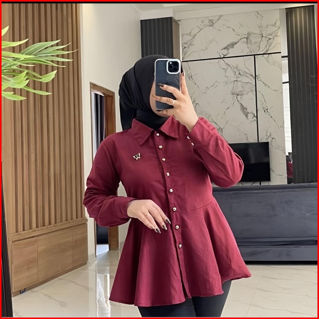 Atika Blouse Polos Korean Shirt Wanita-kemeja Kerja Wanita Katun Toyobo