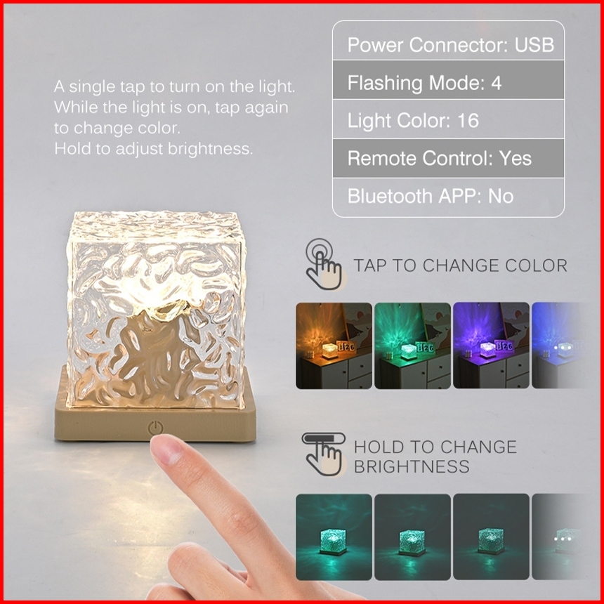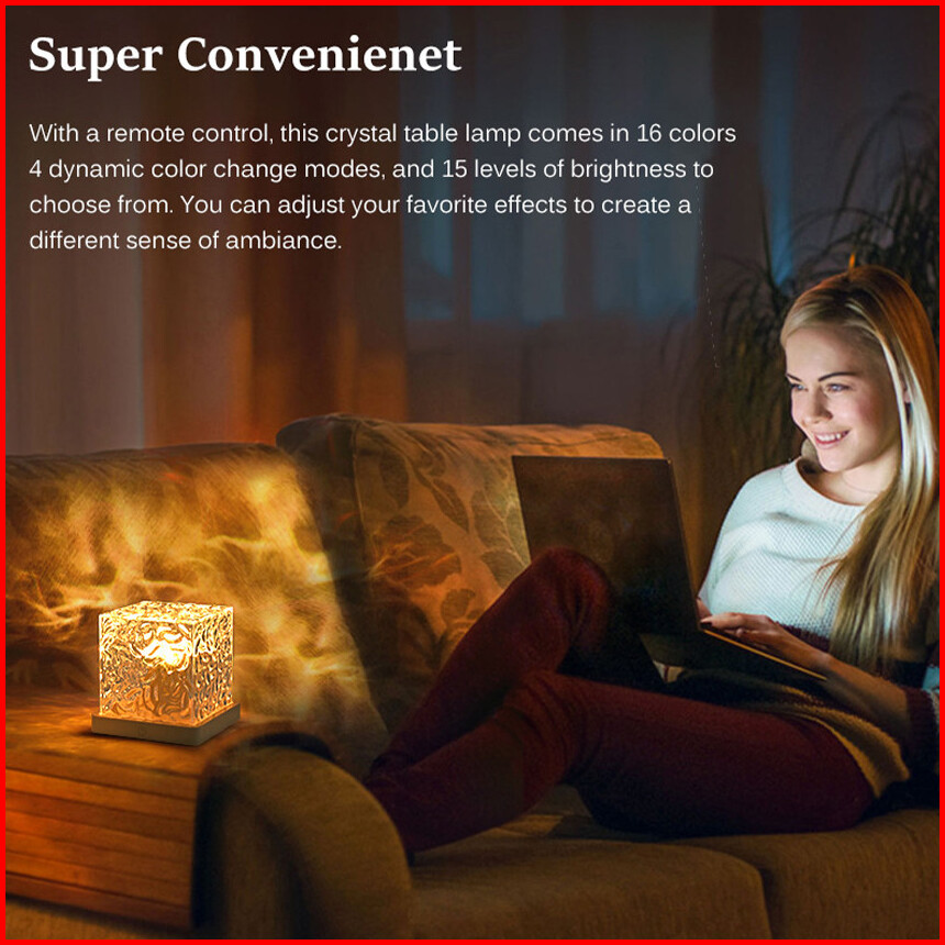 16 Warna Lampu Meja Kristal Aesthetic Water Wave Crystal Table Lamp Lampu Led Proyektor Tidur Kamar