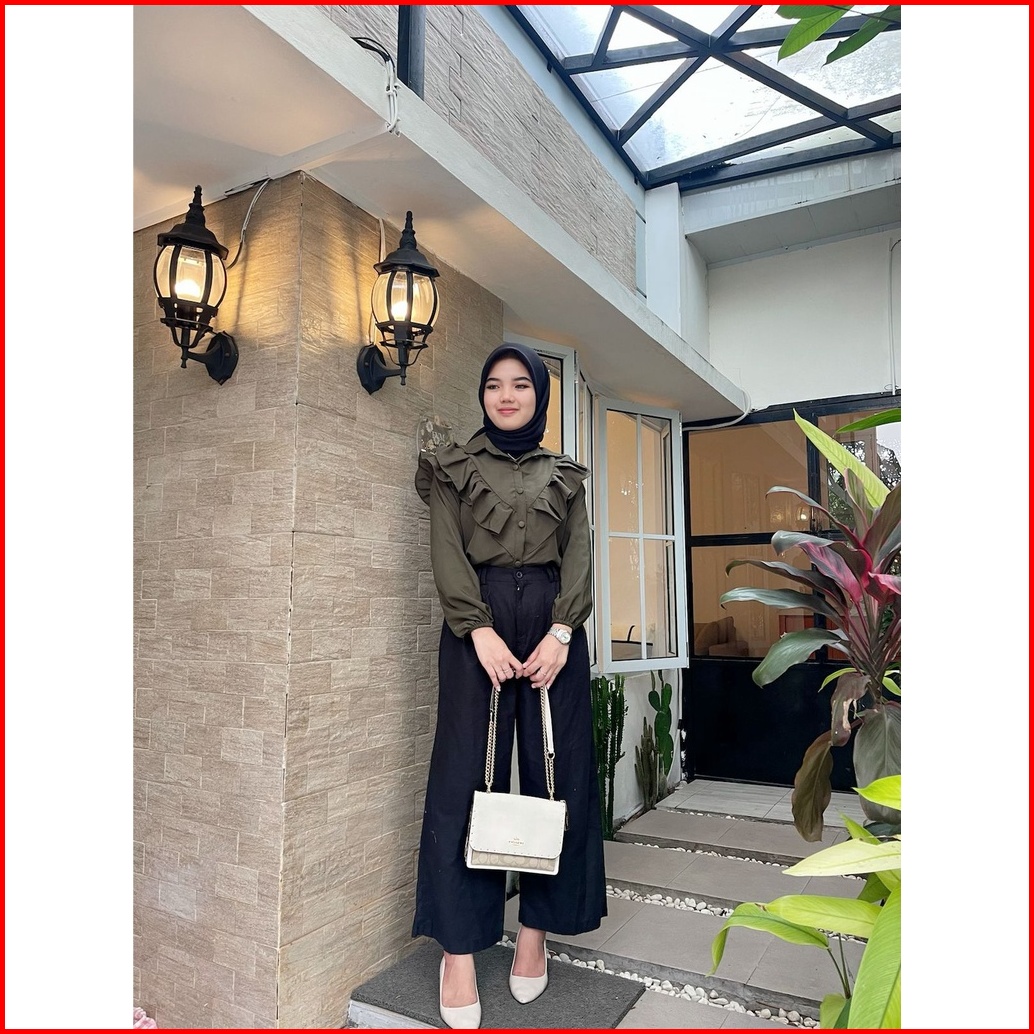 Befast - Zfs Ootd Blouse Eriko Lelana Wrap Button Ruffle Shirt Blouse Crincle Model Terbaru Pakaian Cewe Kue Kekinian Re