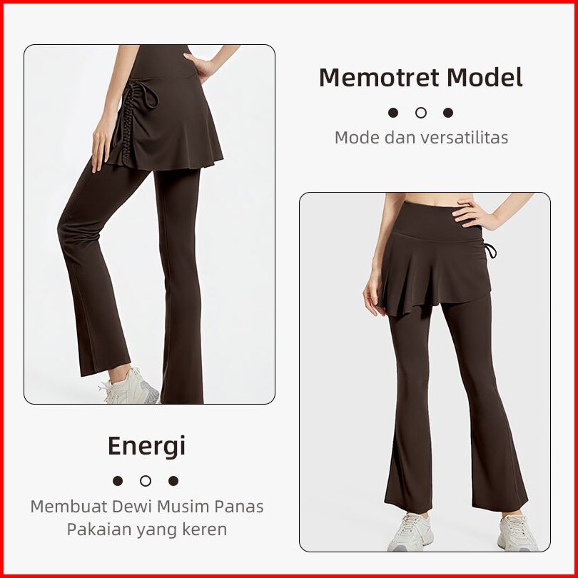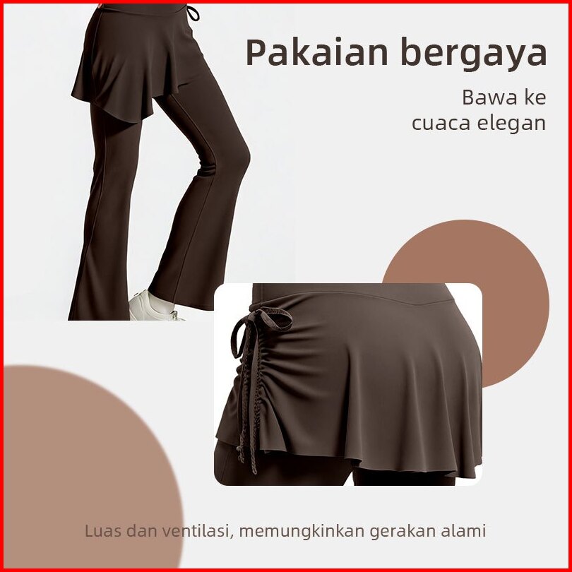 Fuyogi Legging Rok Celana Olahraga Wanita Highwaist Skirt Pant Tali Serut Pilates Yoga Flare Pants