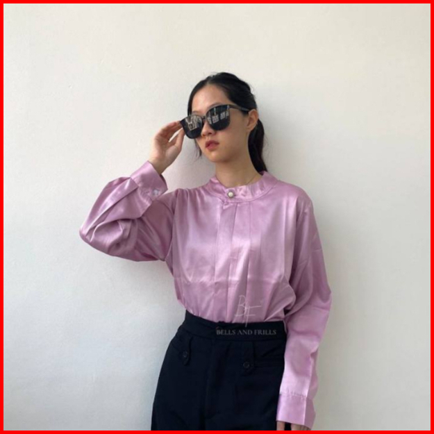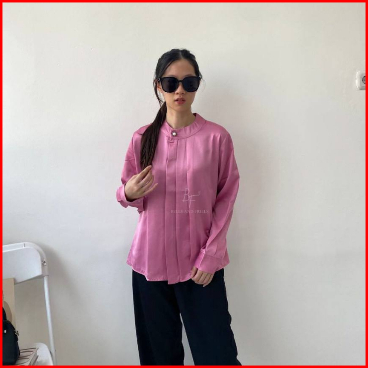 Deanna Blouse Satin Kerah Oval High Neck Hijab Friendly Atasan Wanita Basic Kemeja Kantor Blus Office Casual 0438