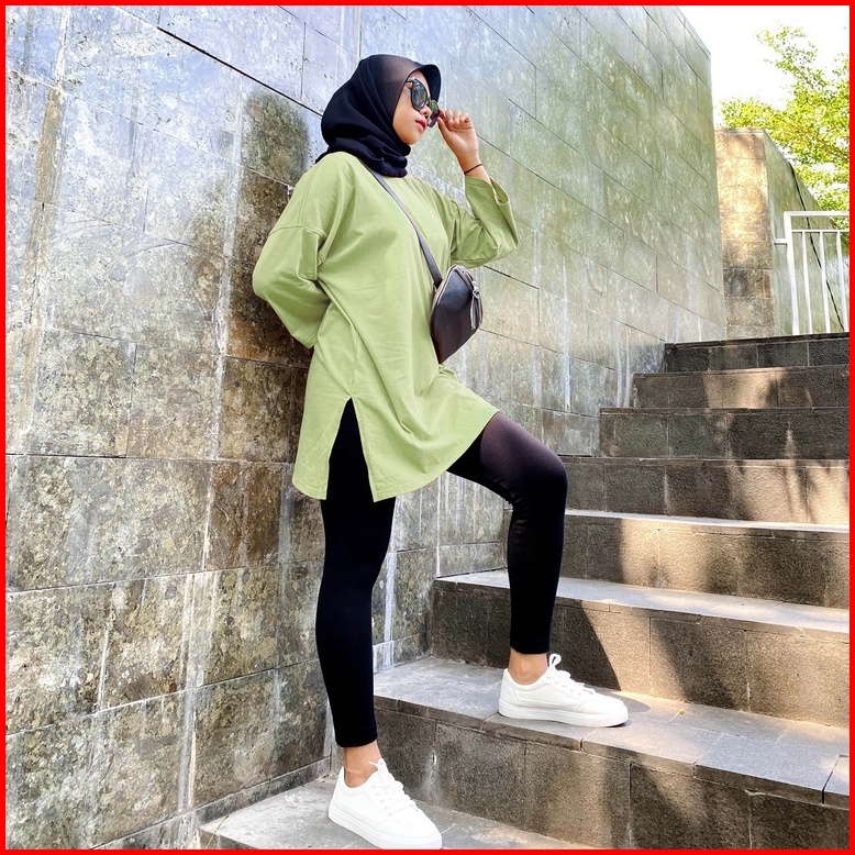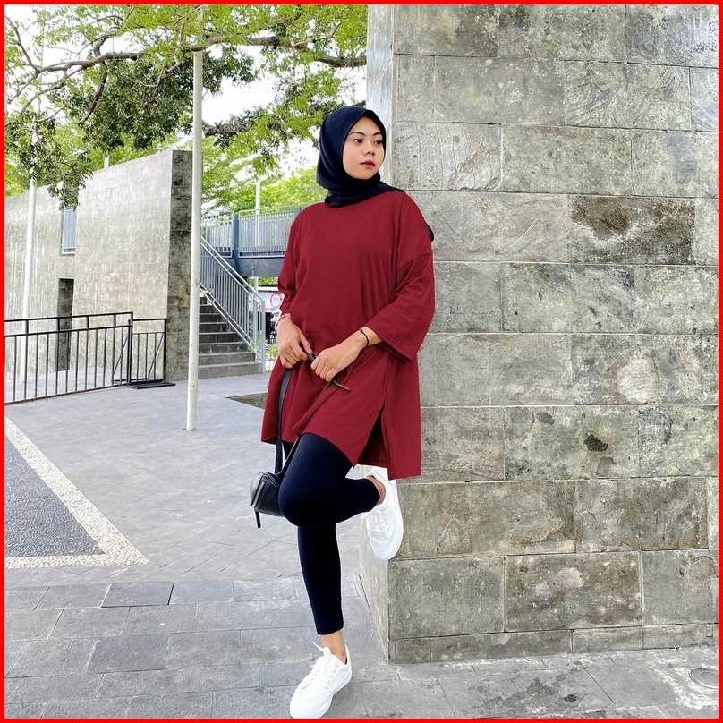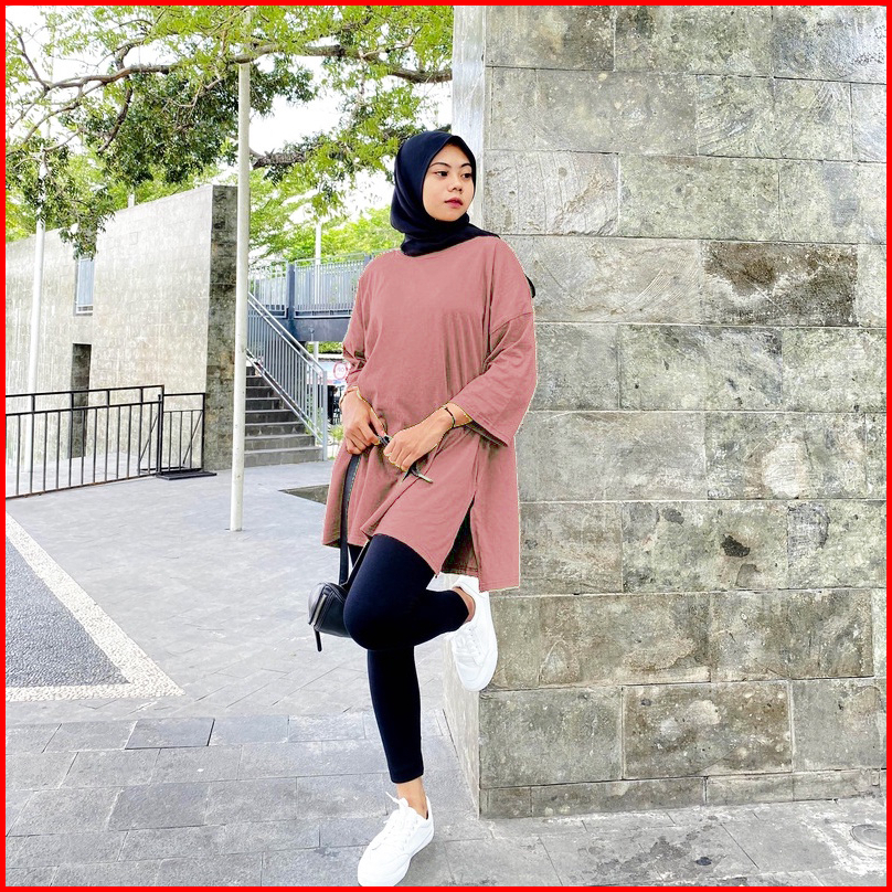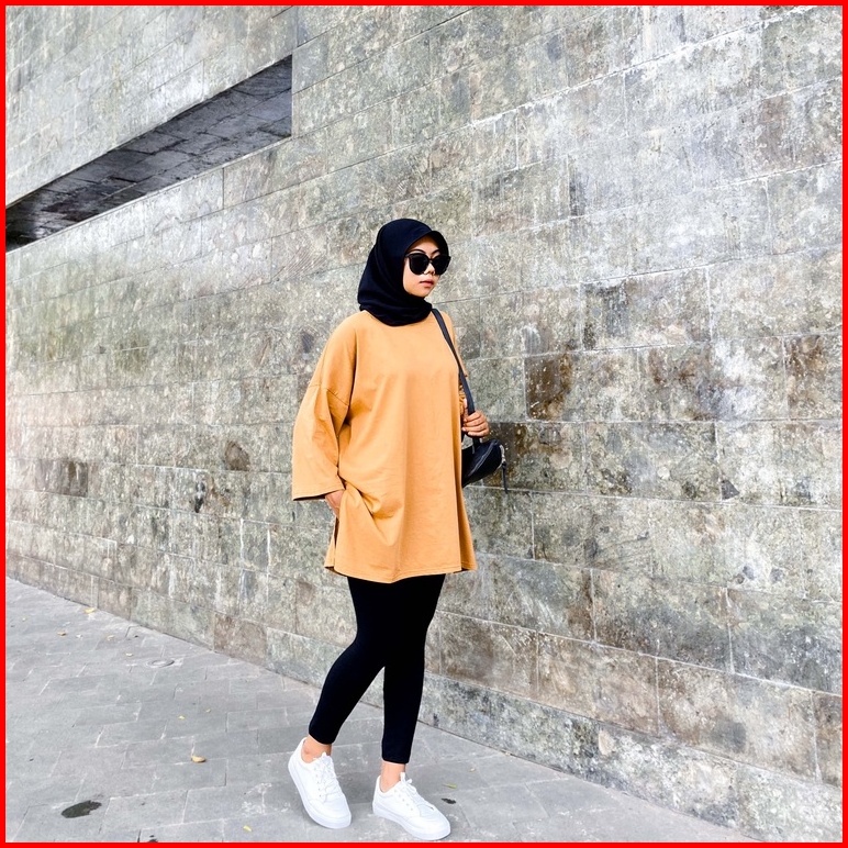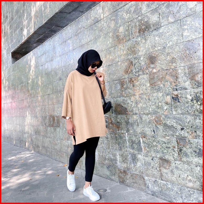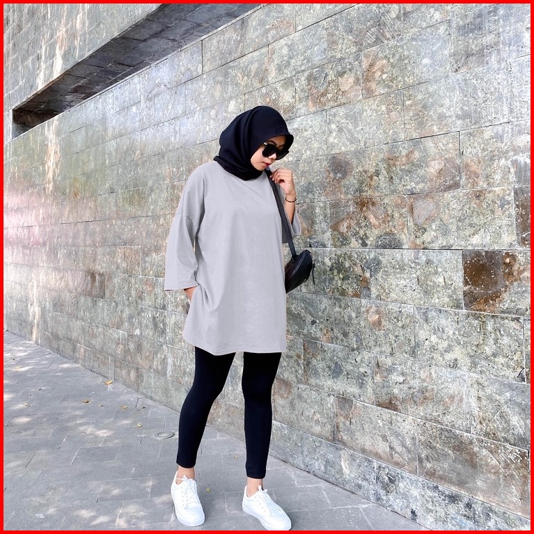 Kaos Oversize Hijab Friendly Lengan 7 8 Basic Top Oversize By Youniq