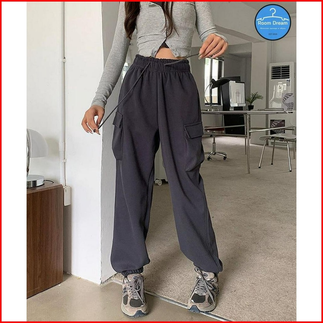 Celana Cargo Wanita - Jogger Gamblok Celana Panjang Wanita Tali Serut - One Pocket Korean Style