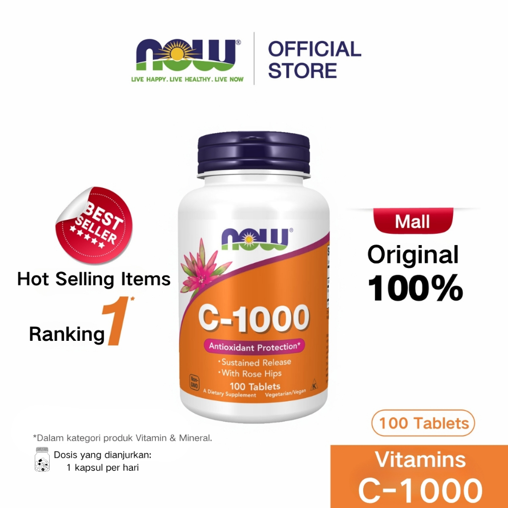 Now Foods Vitamin C-1000 Antioxidant Protection Rose Hips Ascorbic 100 Tablets | Umur Simpan 3 Tahun