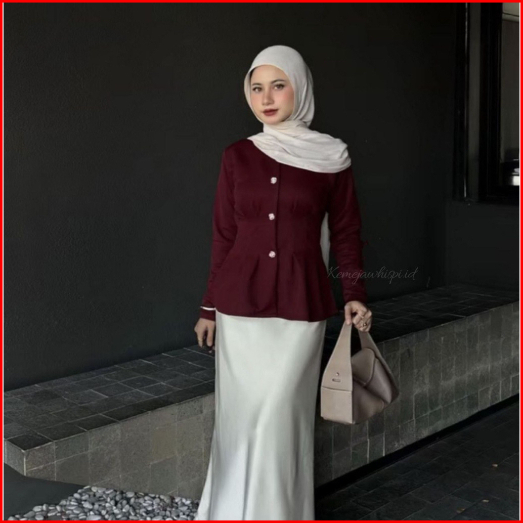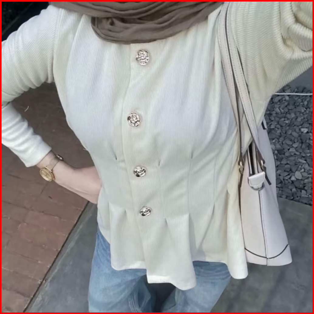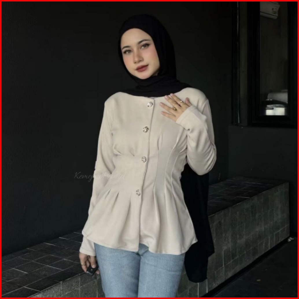 Davina Blouse Knit Atasan Wanita Body Slim Fit Lengan Panjan Kancing Aktif