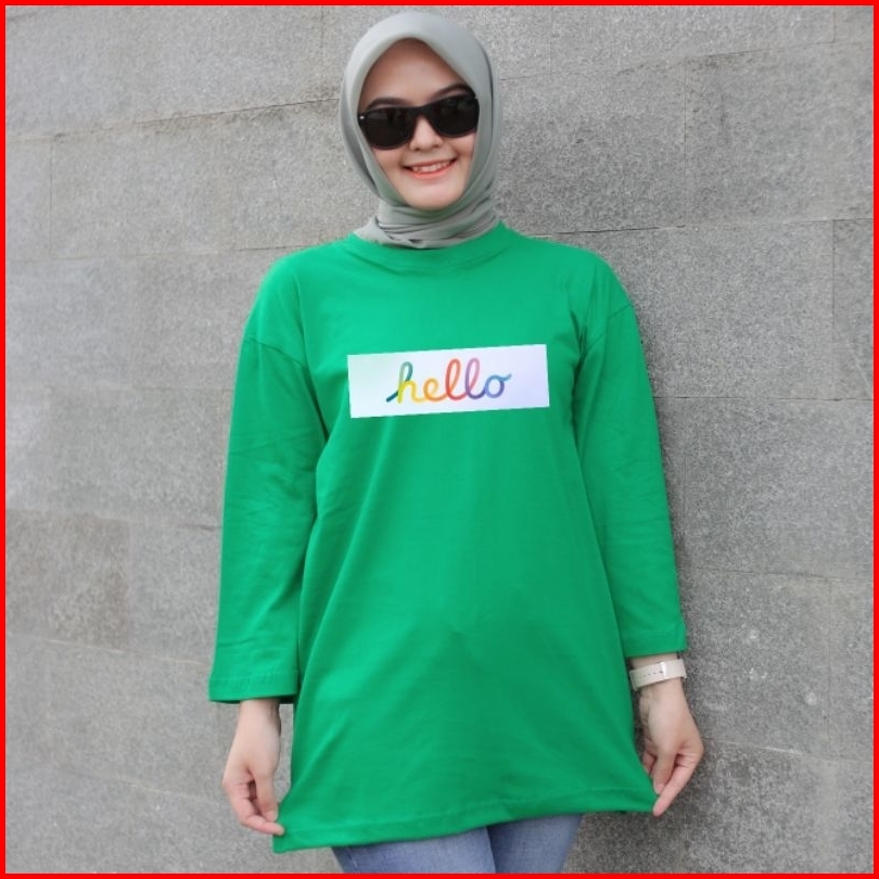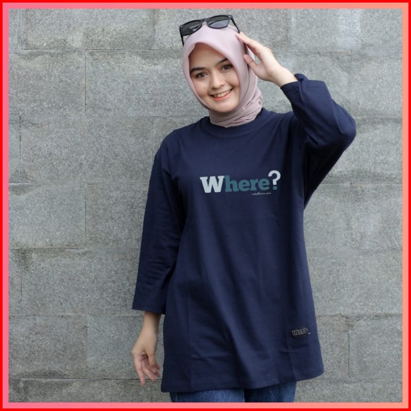 Kaos Wanita Lengan Panjang 7 8 Oversize Motif Lucu Atasan Jumbo Muslimah Hijab Style Ootd