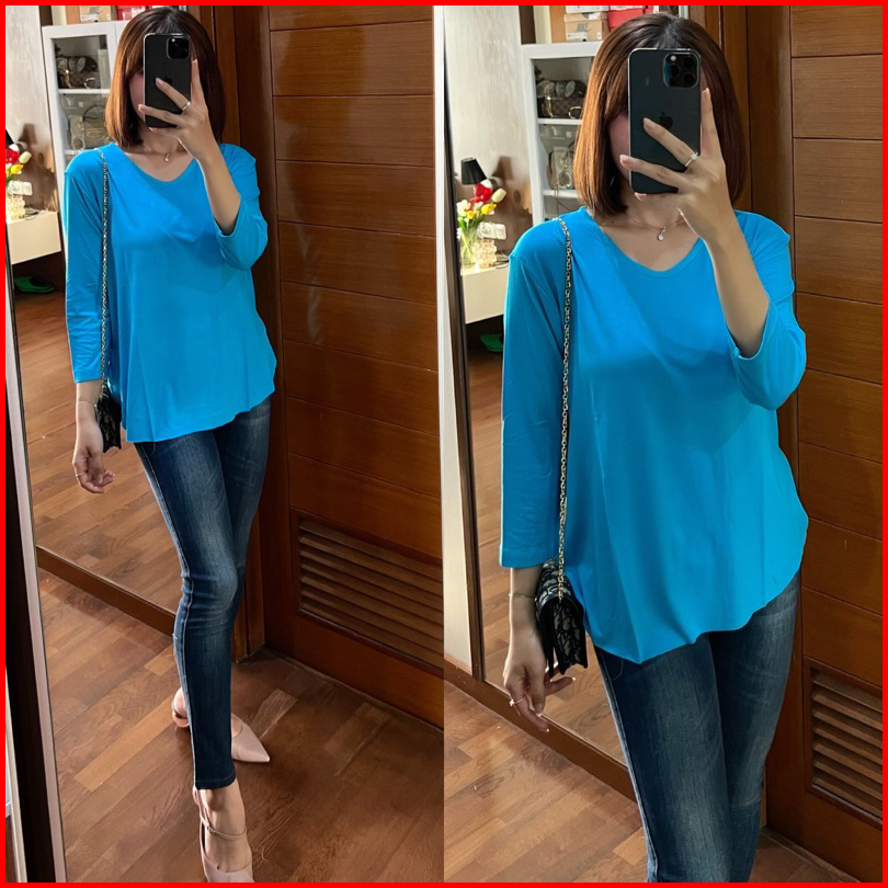 Kaos Spandek Tangan 3 4 Baju Atasan Hijab Bahan Rayon Spandex Premium