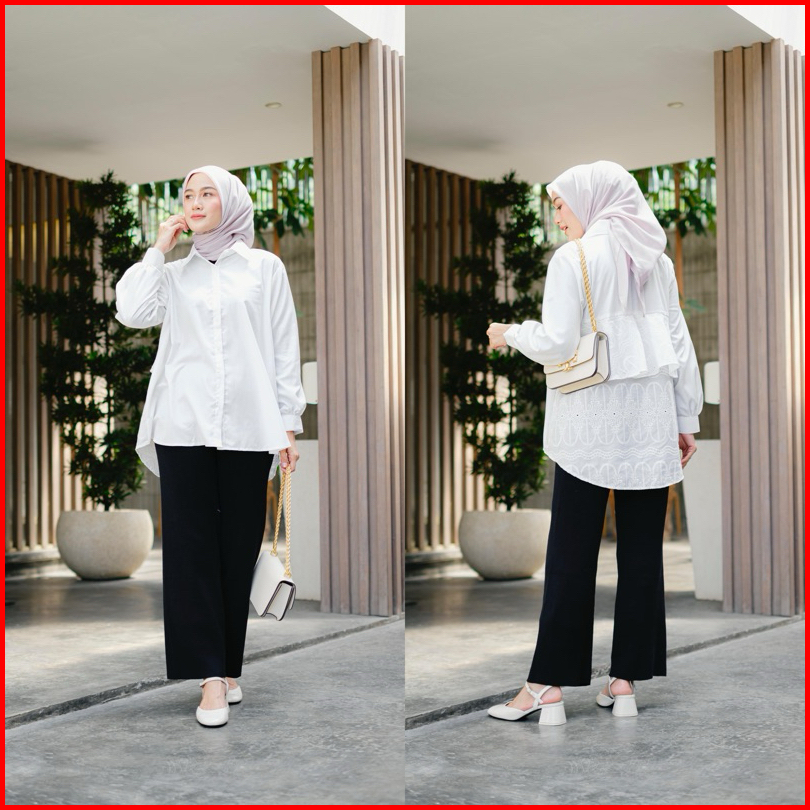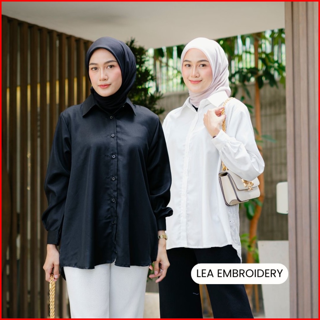 Karleen Hijab - Lea Kombinasi Cotton Embroidery Bordir Kemeja Kerja Ngampus Wanita Casual Polos Lengan Panjang Busui