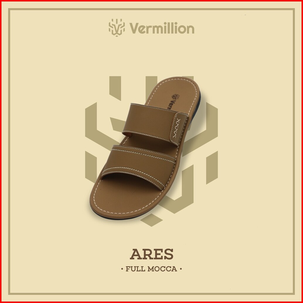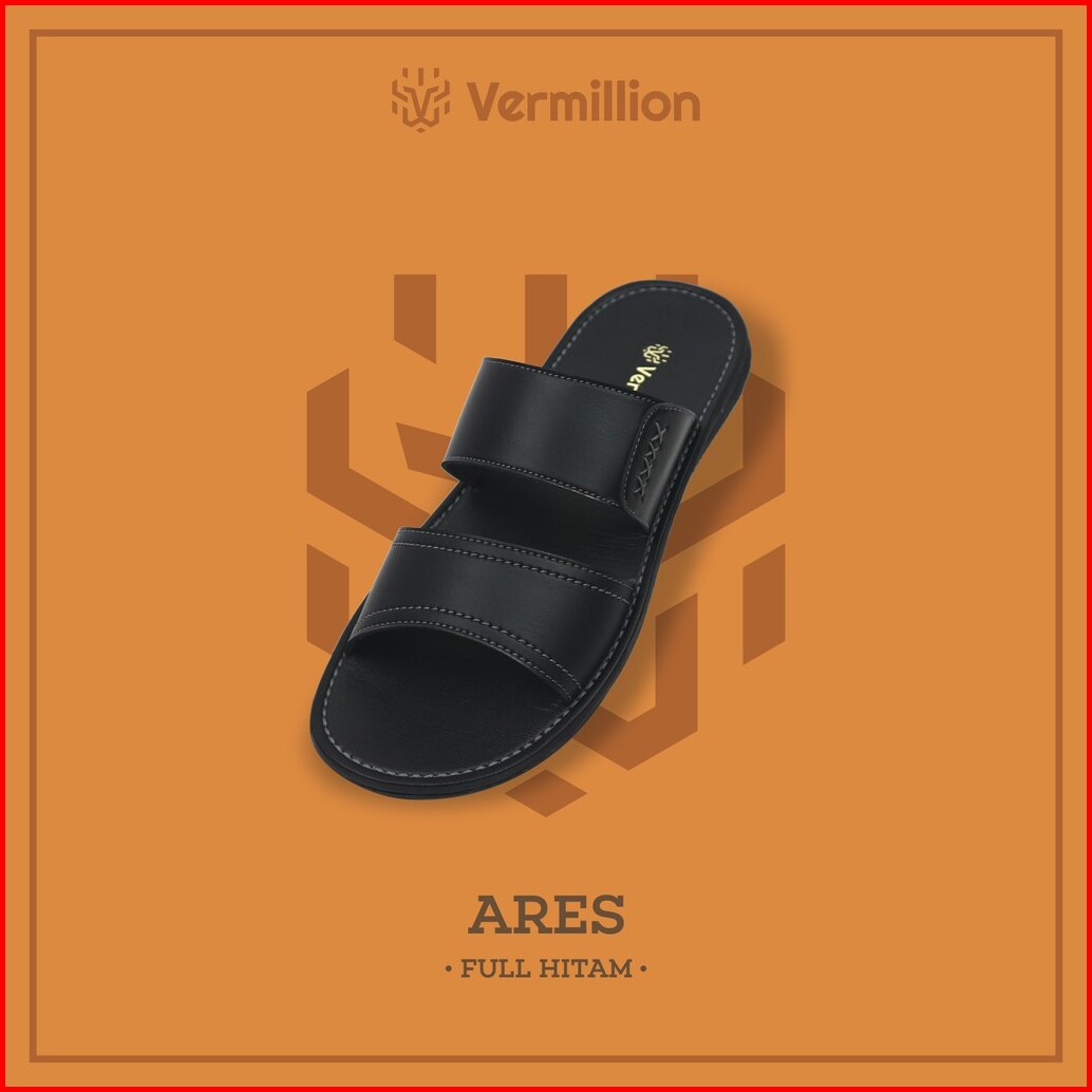 Sandal Casual Pria Kulit Sandal Pria Vermillion Ternyaman Sandal Kulit Slide Jepit Casual - Ares