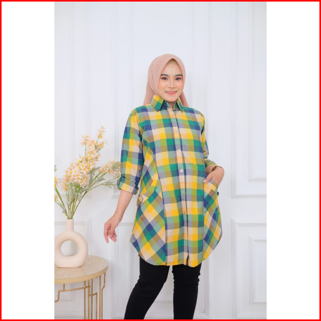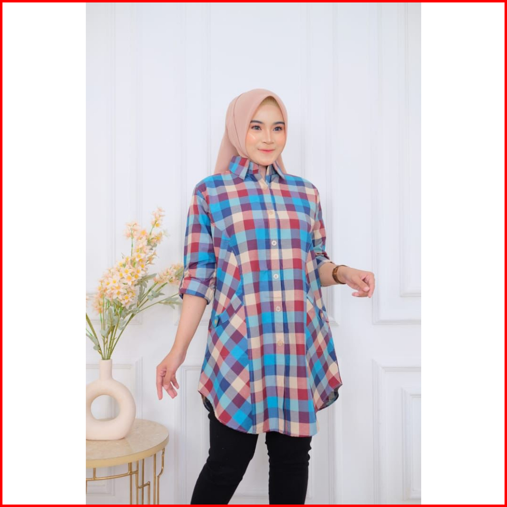 Mufash - Atasan Katun Wanita Motif Kotak Kotak Selina Tunik 2 By Fashion Hijab Solo