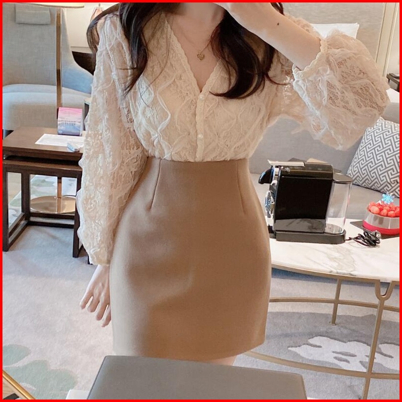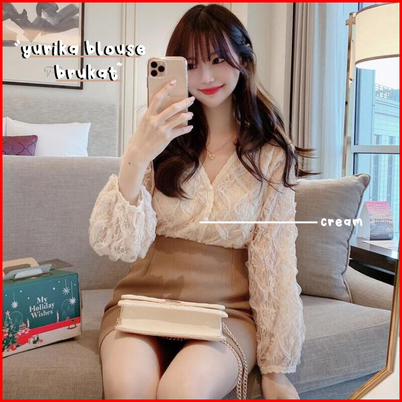 Ios Shop Yurika Atasan Lengan Panjang Brokat Blus Wanita Korean Hijab Cantik