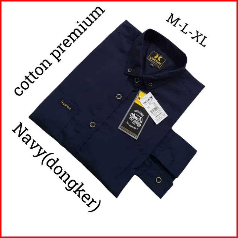 Kemeja Cowok Polos Lengan Panjang Slimfit Hem Pria Kantor Hitam Navy Putih