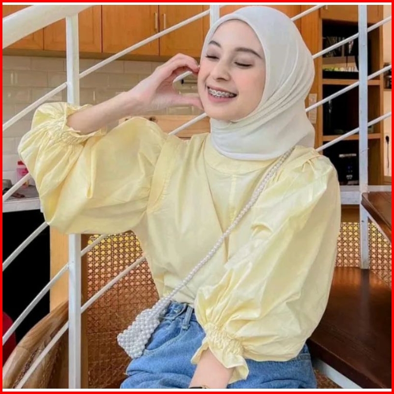 Moni Blouse Katun Linen - Blouse Puffy Lengan Balon - Atasan Wanita Korean Style