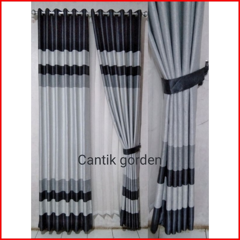 Gorden Jendela Pintu Panjang Pendek Blackout Import Motif Minimalis Pelangi 6 Gelombang 12 Ring