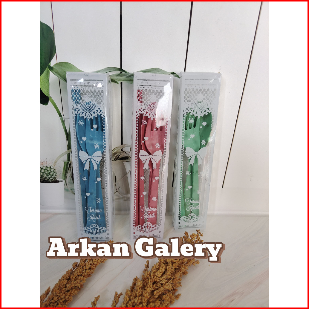 Souvenir Pernikahan Sendok Garpu Simpit Lokal Kemas Mika Motif- 50 Pcs