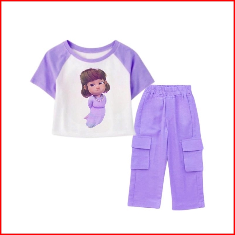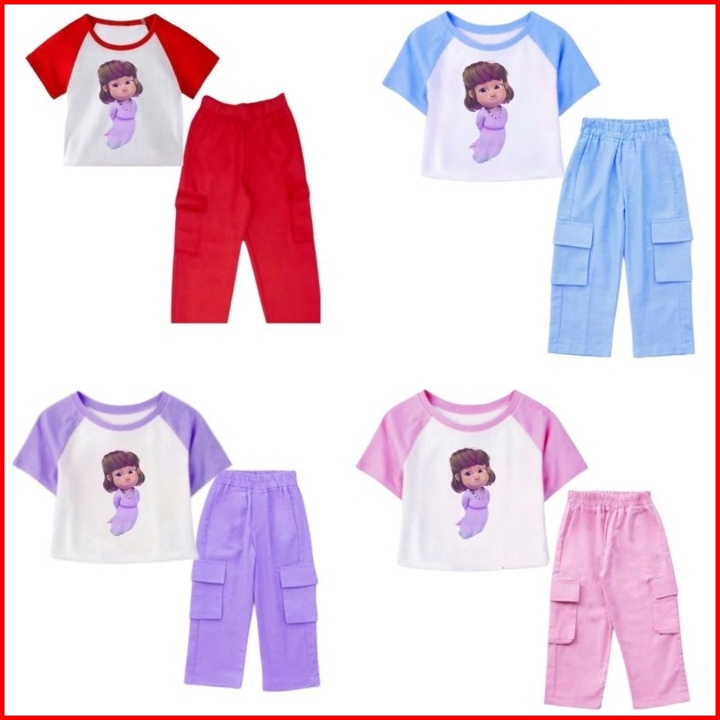 Setelan Kaos Celana Cargo Anak Perempuan Karakter Merry Jumbo Animasi Film Anak