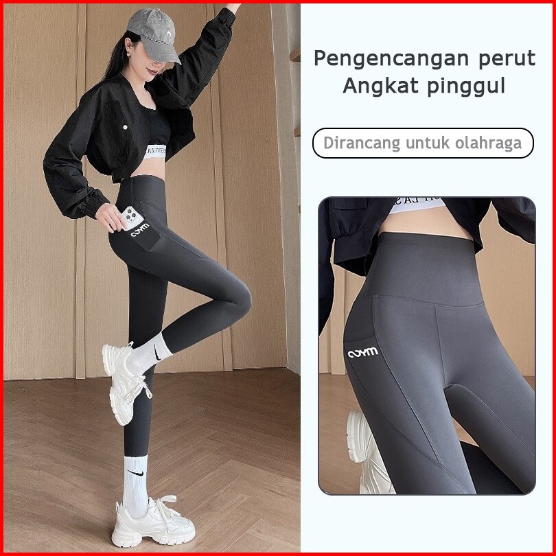 Celana Olahraga Yoga Wanita Saku Legging Celana Kebugaran Pakaian Outdoor Sport 998
