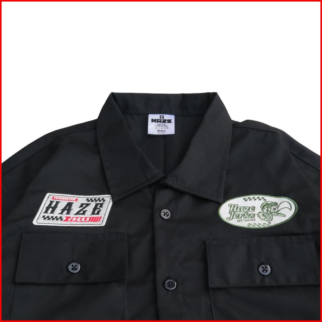 Haze Workshirt Open Collar Boxy Fit Black - Racer Birds