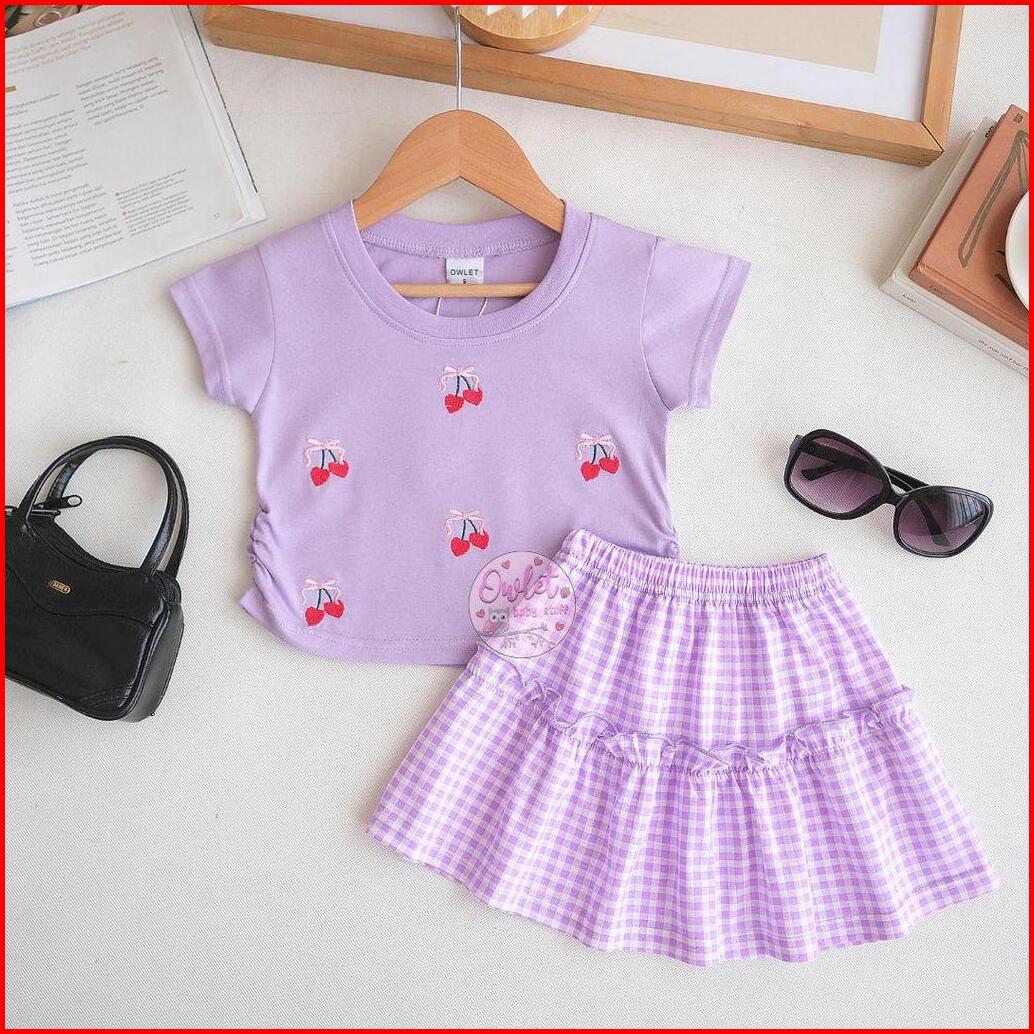 Ready Stok Owlet - Jisoo One Set Setelan Rok Anak Perempuan Setelan Rok Ballon Atasan Bordir Usia 1-7 Tahun