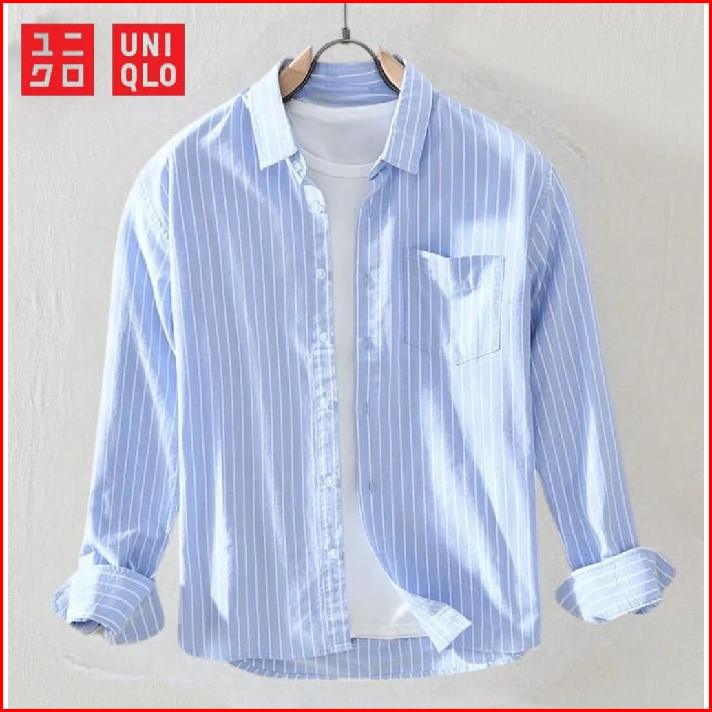 Kemeja Pria Lengan Panjang Motif Garis Stripe Slim Fit Kemeja Casual Cowok Model Kekinian