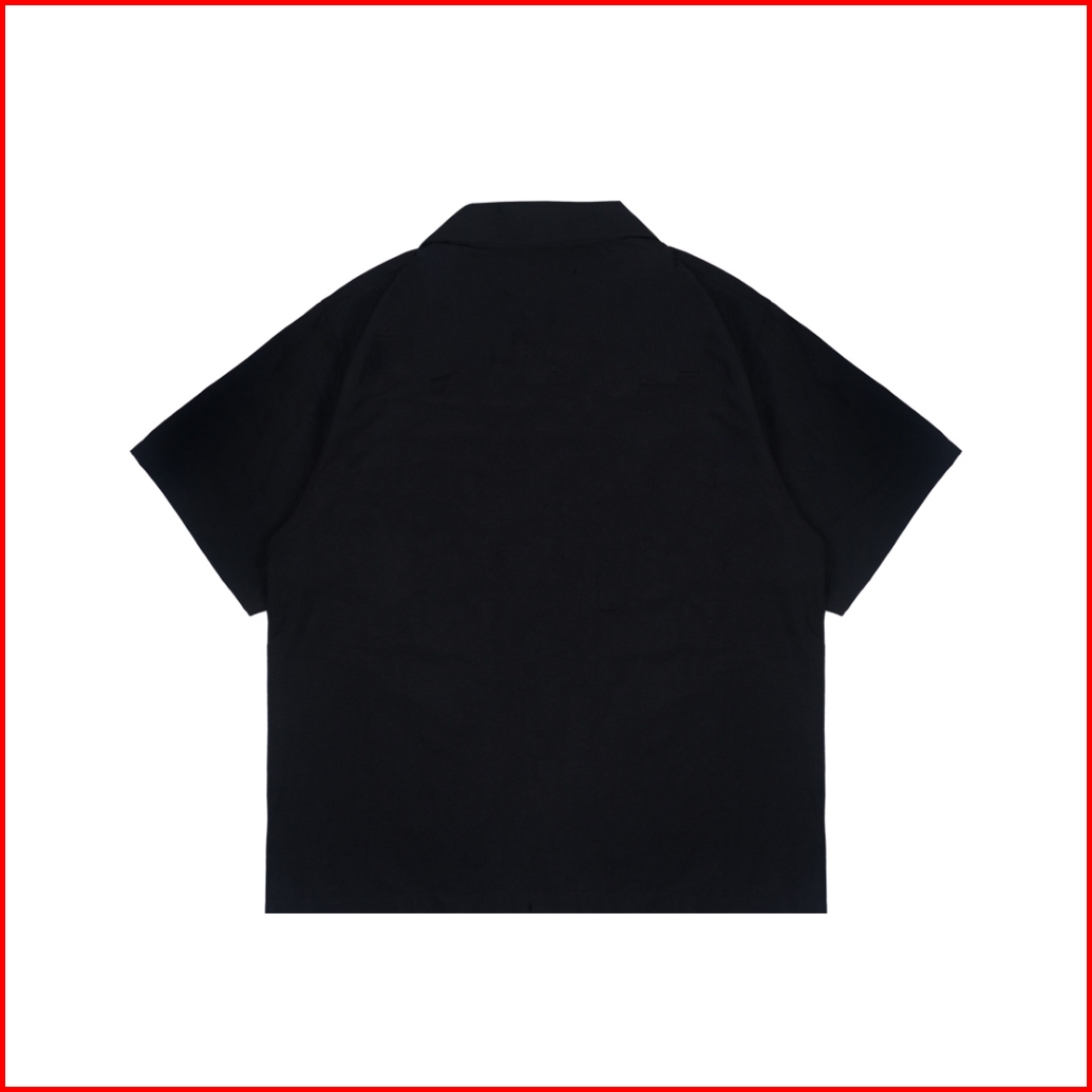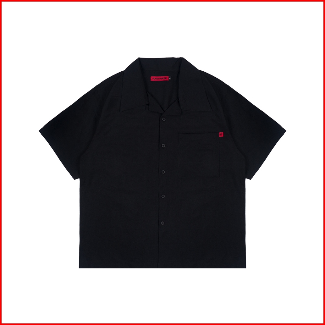 Rasshaze - Bowling Boxy Oversized Shirt Kemeja Hitam Bowling Polos Pria Kerah Terbuka Lengan Pendek