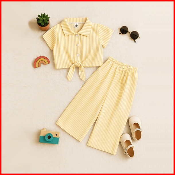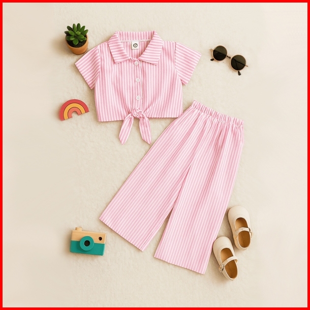 Miniku - One Set Kemeja Anak Korean Style Setelan Anak Motif Salur Usia 1 - 8 Tahun Setelan Kemeja Anak Setelan A
