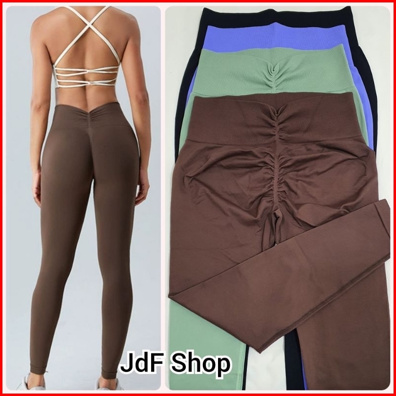 Jdfshop 4012 - Long Shark Highwaist Booty Push Up Sport Pants Celana Panjang Legging Kerut Stretch