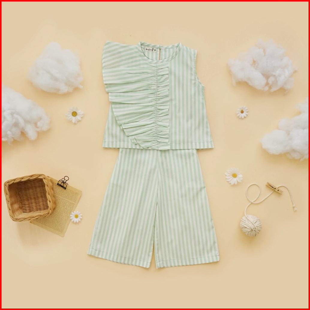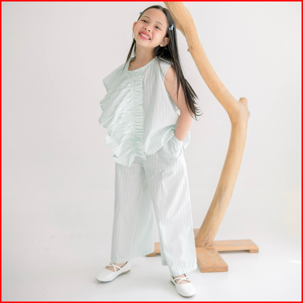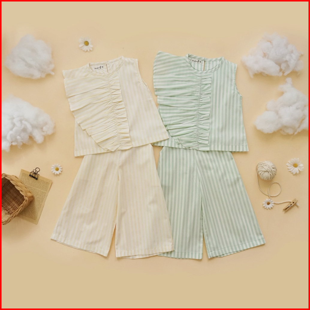 1-8 Tahun Calia-setelan Anak Perempuan Garis Set Anak Perempuan Ruffle Set Anak Perempuan Korea Baju Anak Perempuan Kore
