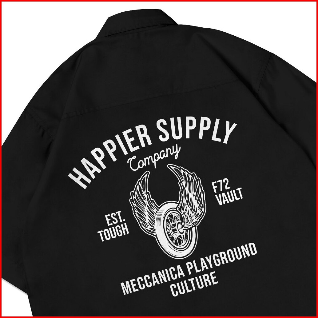 Happier Kemeja Pendek Workshirt Bengkel Meccanica Supply Motor Hitam