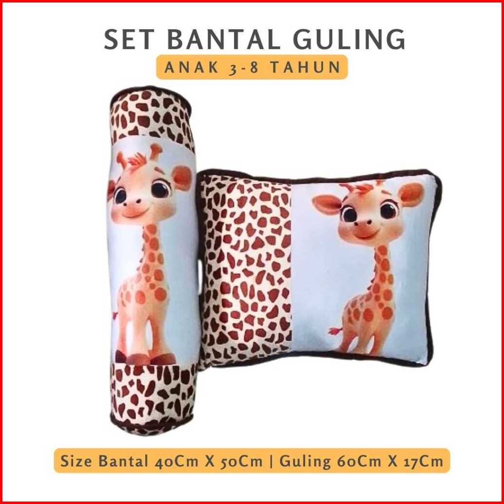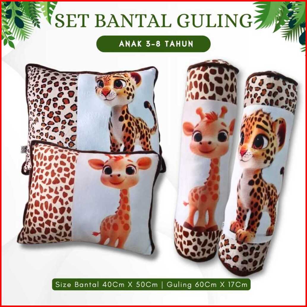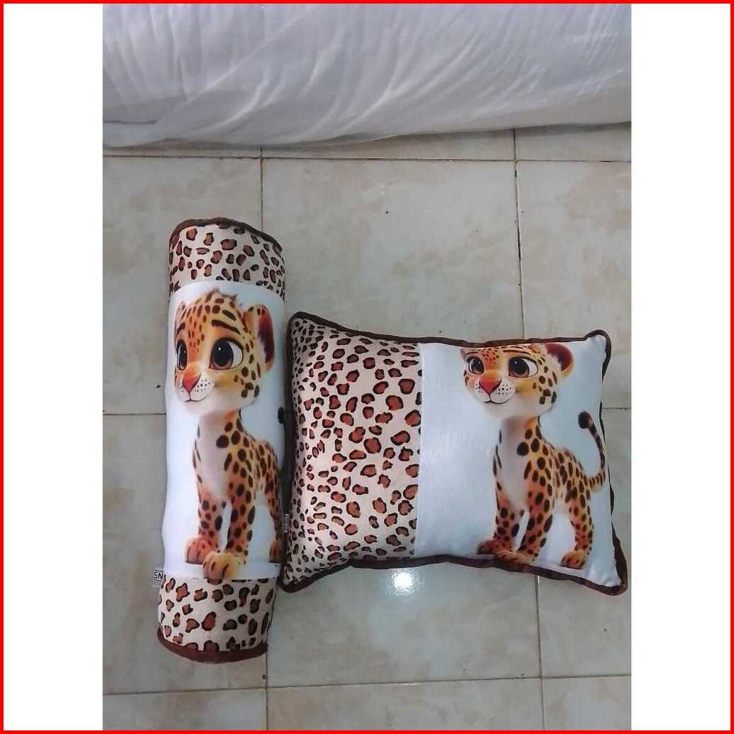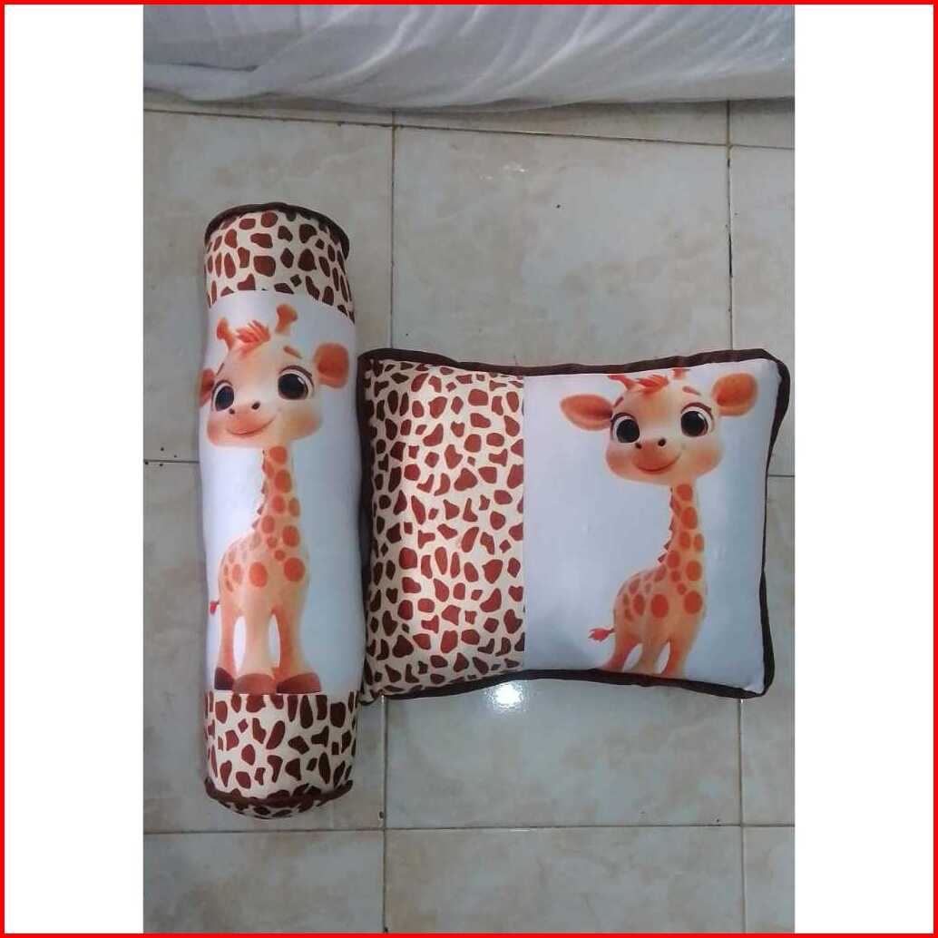Bantal Dan Guling Anak Karakter Hewan Giraffe Tiger Cow Koala Bahan Halus Printing Bisa Untuk Kado