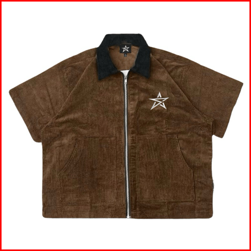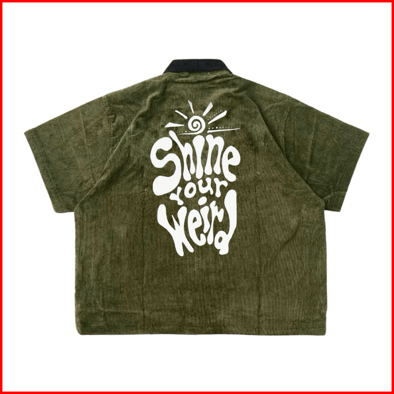 Sai - Dirty Work Shirt Green Army Corduroy Zipper Boxy Shirt - Boxy Fit