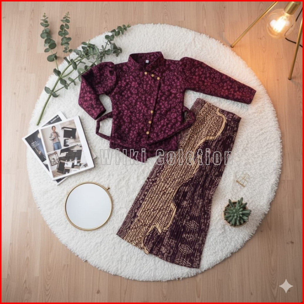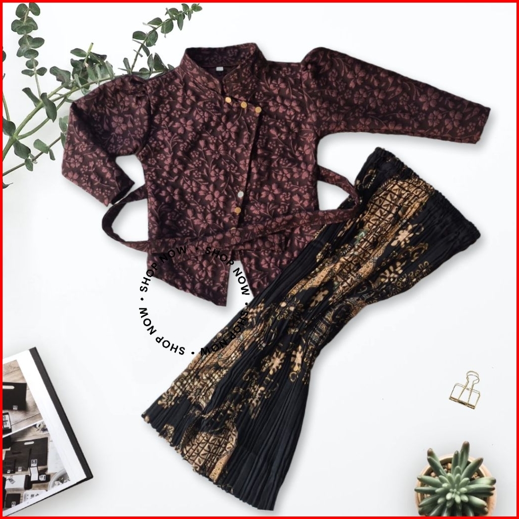 Setelan Kebaya Anak Janggan Modern Embos Jaguard Premium Set Rok Plisket Usia 4 - 14 Tahun Tk Sd Smp