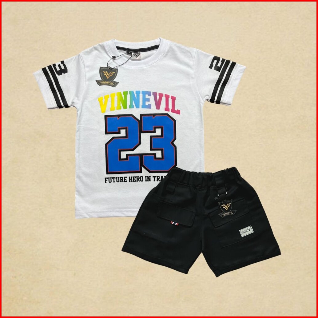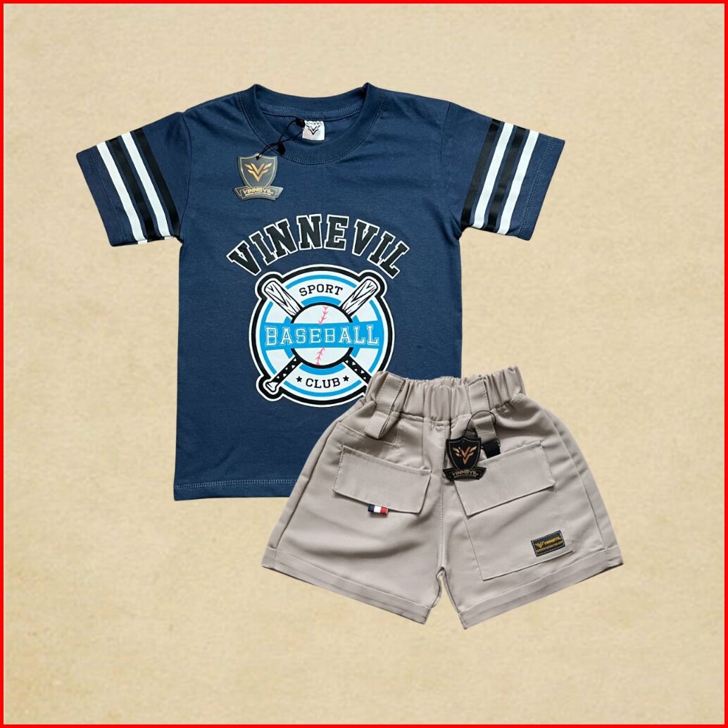 Setelan Anak 1-10 Tahun Laki Laki Perempuan Cotton Combed 30s Sablon Plastisol Celana Cargo Twill