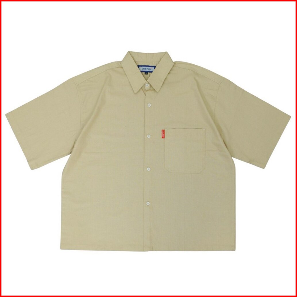 Jinsyou - Kemeja Boxy Oversize Lengan Pendek Boxy Shirt Saku 1