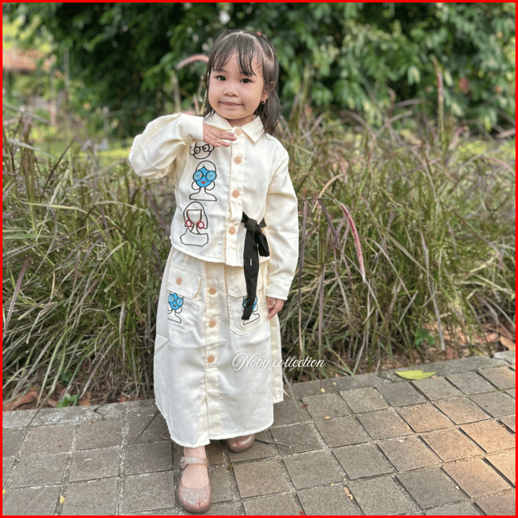 Noby Collection Setelan Anak Perempuan Pita Hitam Bordir Kartun Fashion Kids Kekinian