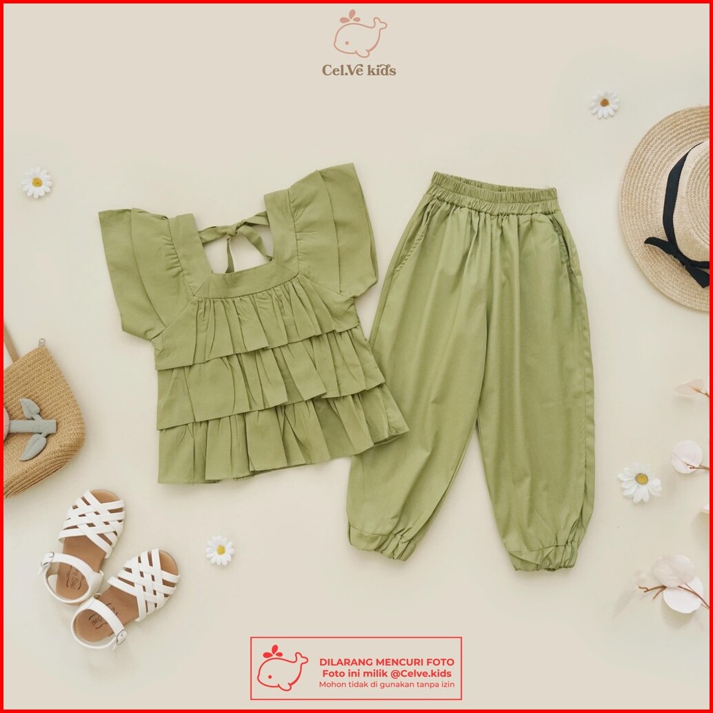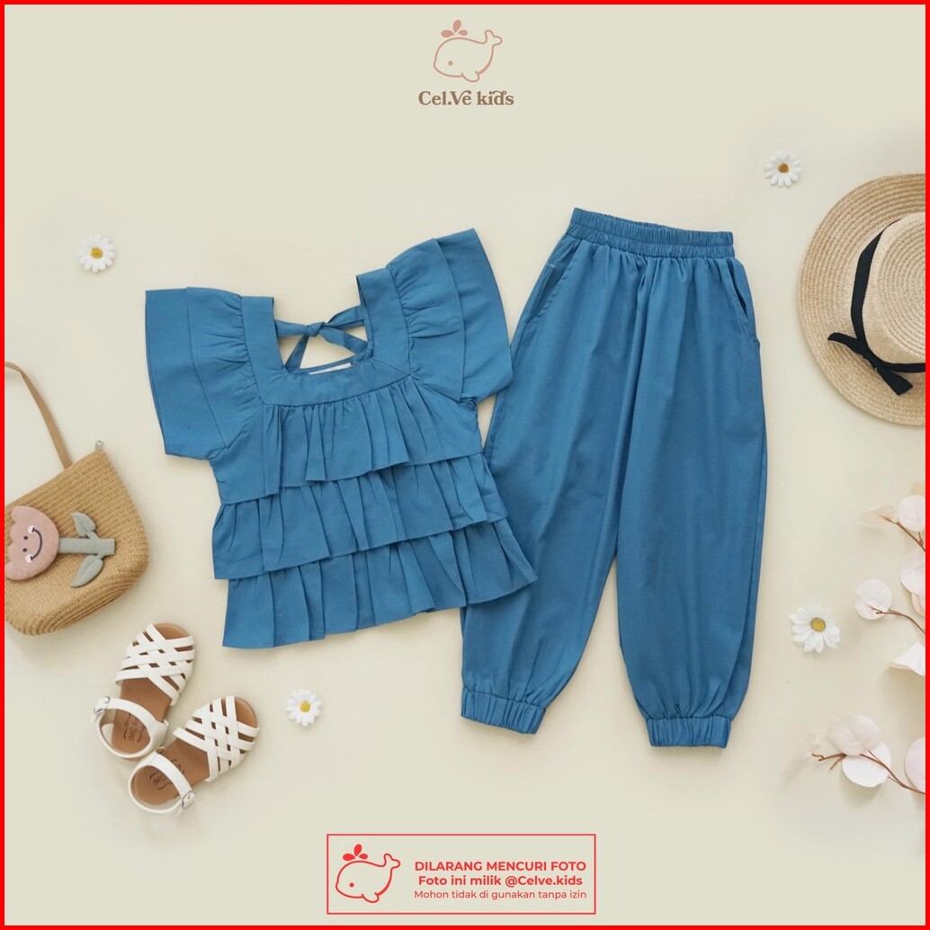 Celvekids - Stelan Holly Set Baju Anak Perempuan Korean Style Bahan Katun Poplin Usia 1-8th