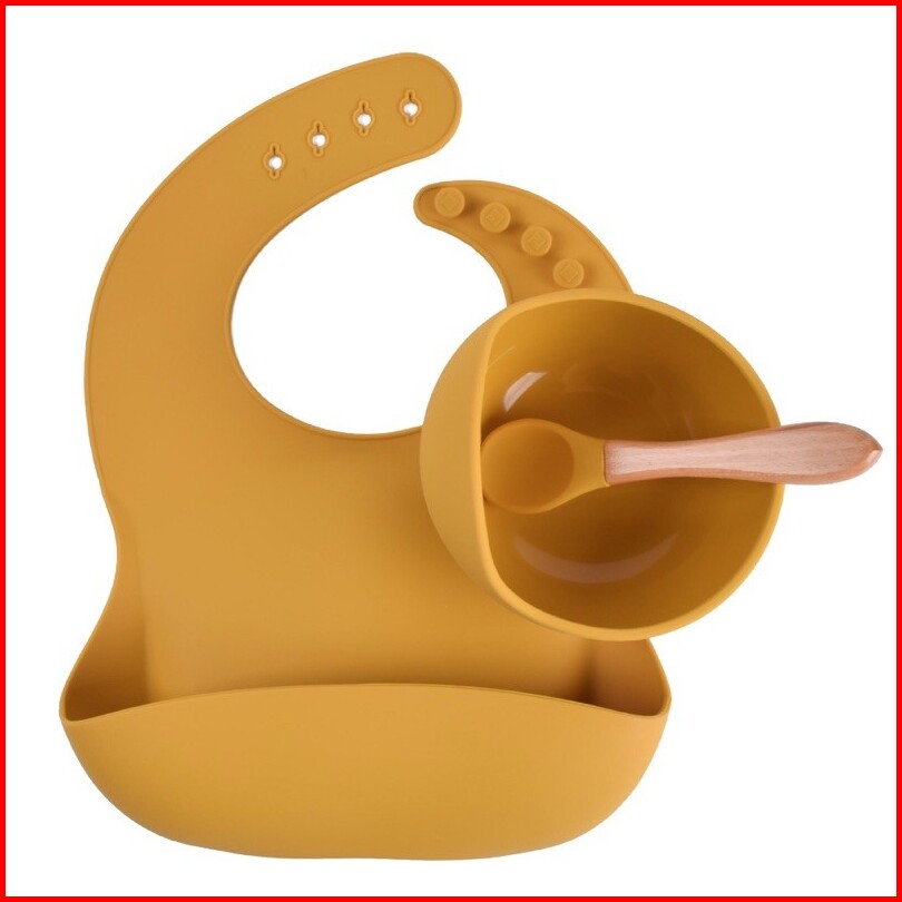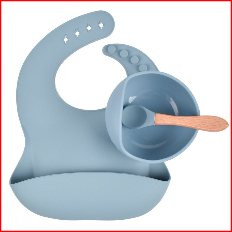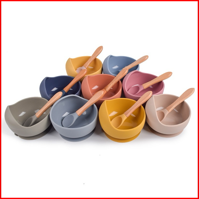 Leleoncare Mangkok Bayi Set Sendok Bib Warna Anti Slip Mangkuk Set Tempat Makan Anak Suction Bowl