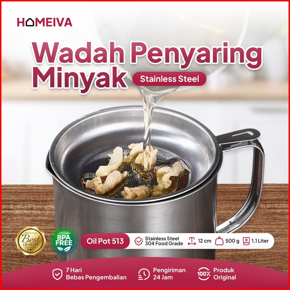 Homeiva Oil Pot Wadah Saringan Minyak Stainless Steel Gelas Saringan Minyak Tempat Saringan