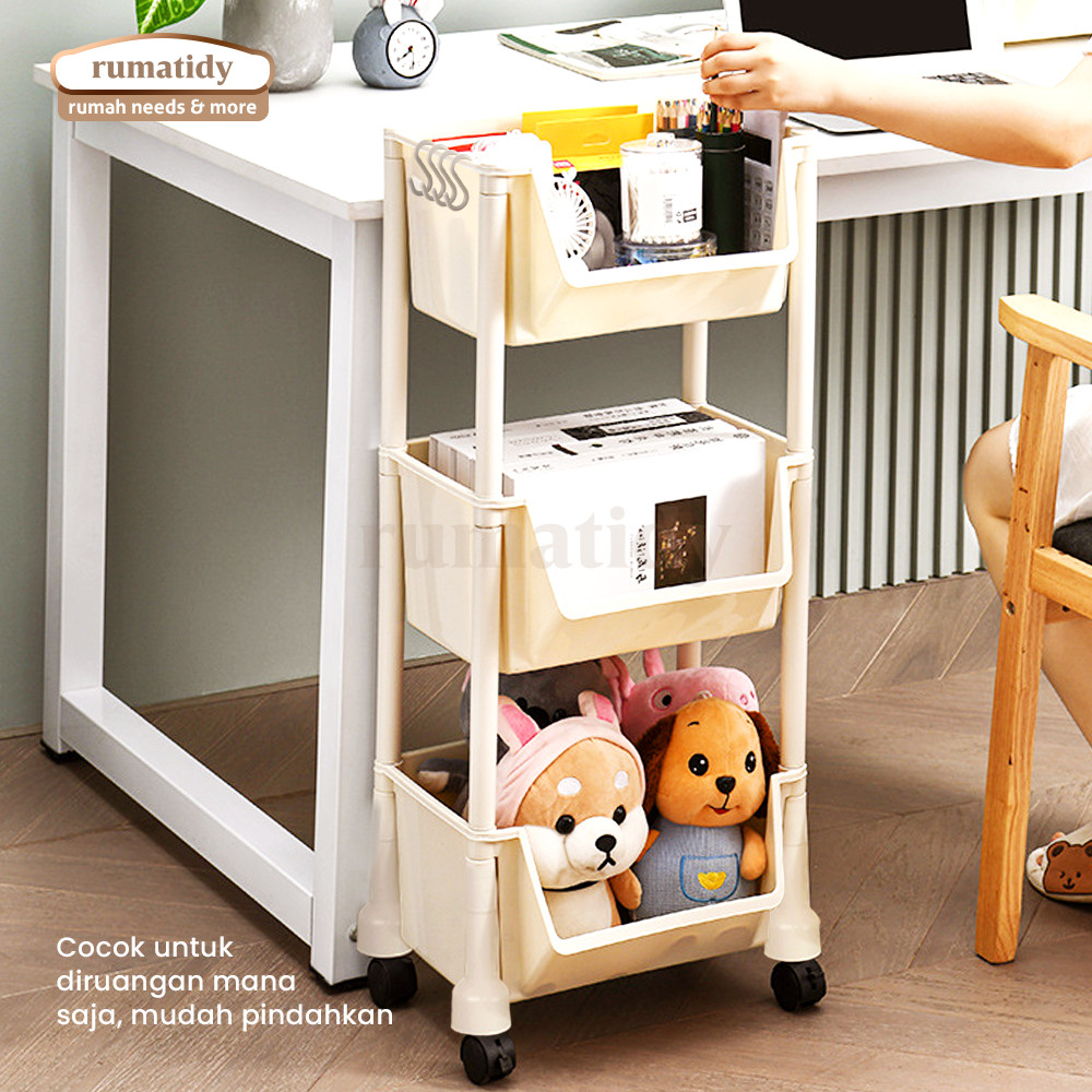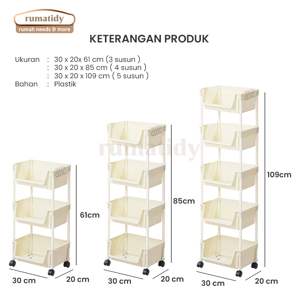 RUMATIDY - Rak Susun Serbaguna 3-5 Tingkat dengan Roda Portable untuk Buku Mainan Dan Penyimpanan