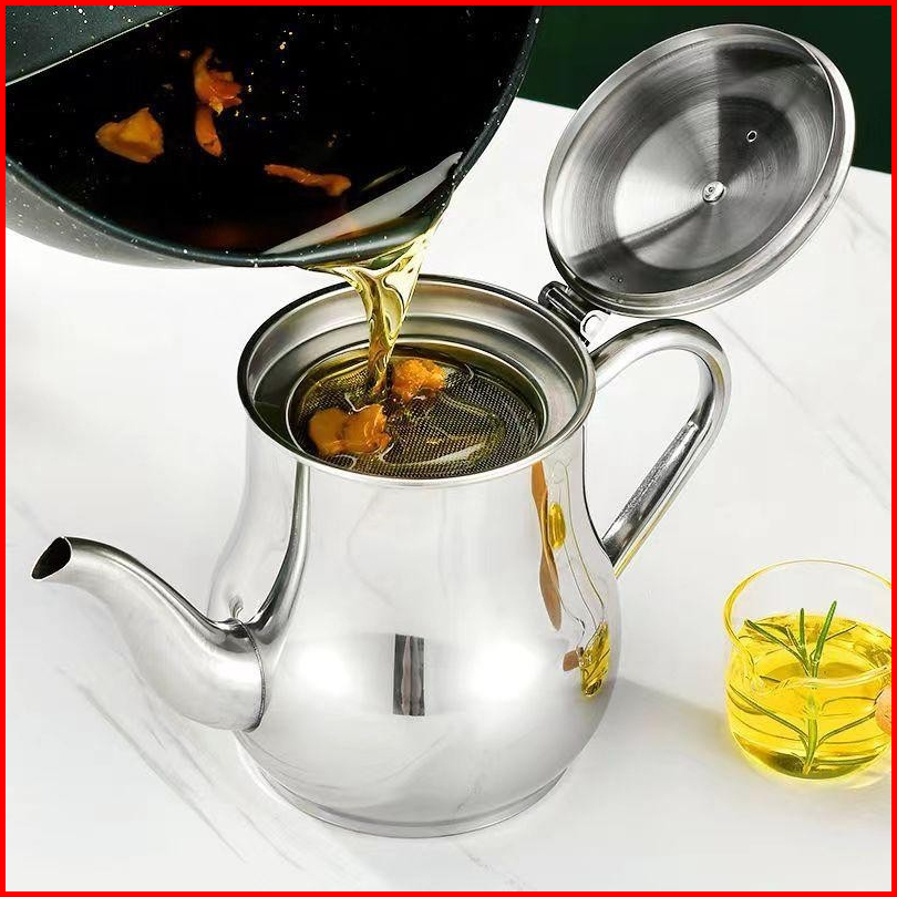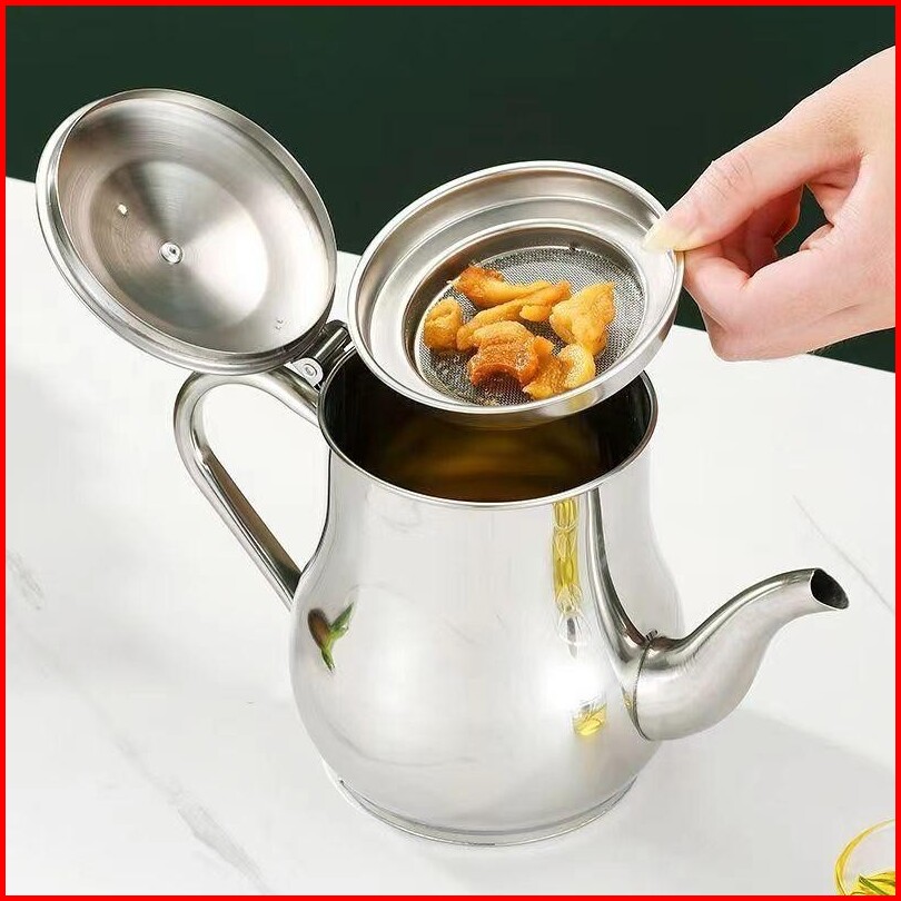 Oil Pot Teko Saringan Premium Penyaring Minyak 800 Ml Stainless Angsa Jumbo