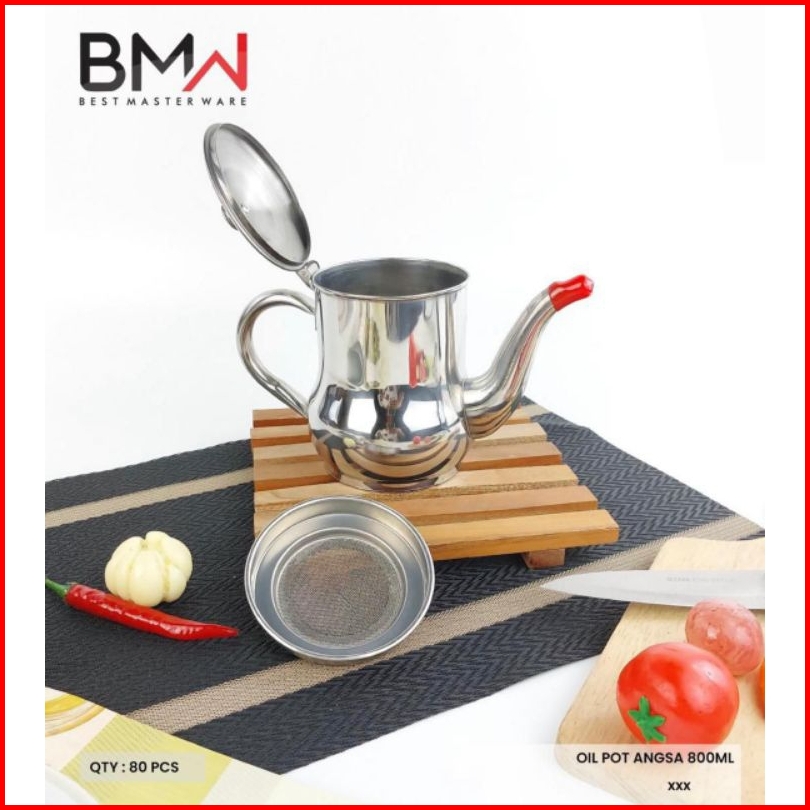 Oil Pot Angsa 800 Ml Full Stainless Tempat Minyak Saringan Stainless Set Import