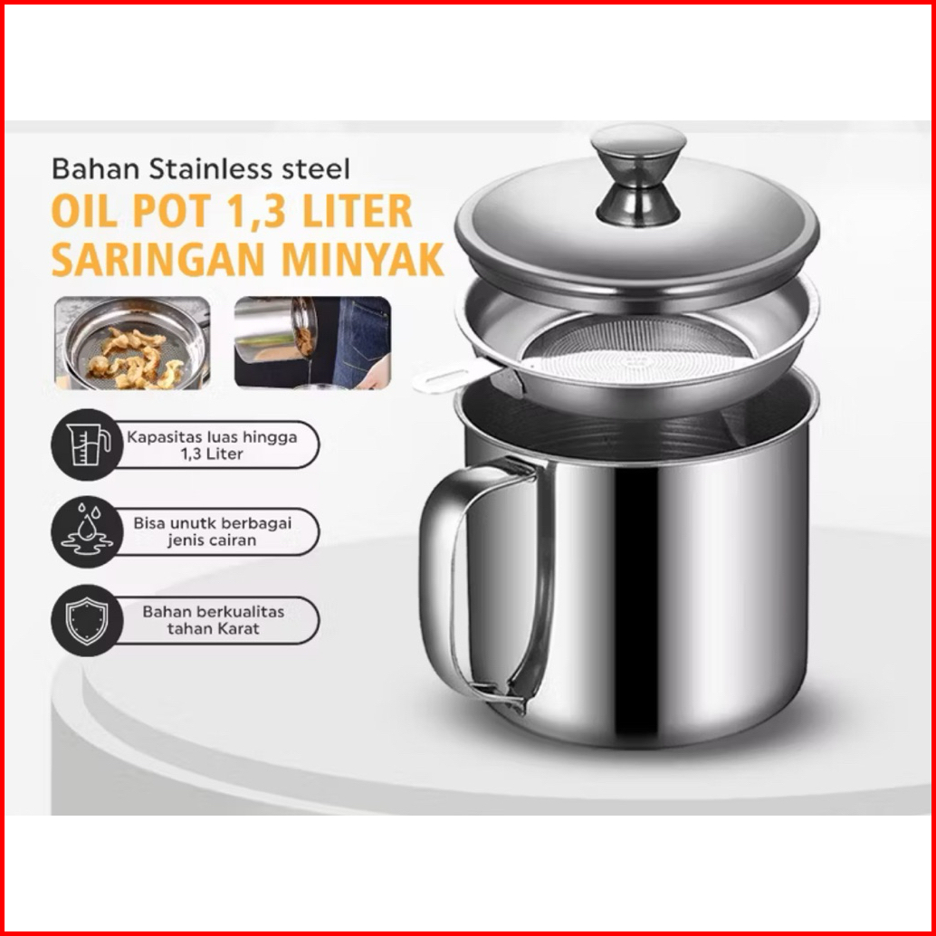 Culina Premium Kitchenware Oil Pot Wadah Minyak Goreng Jelantah Bekas Dengan Saringan Stainless