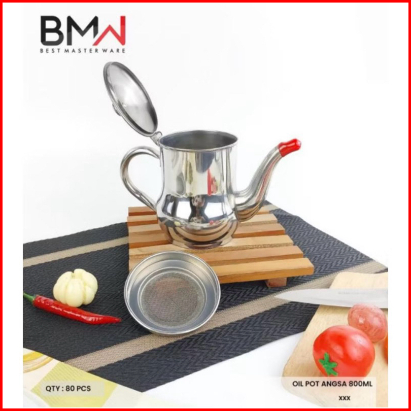 Oil Pot Angsa 800 Ml Full Stainless Tempat Minyak Saringan Stainless Set Import